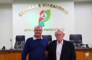 Vereador Paulo Lassig e o empreendedor Ilmo Heep que acompanha a empresa há 75 anos